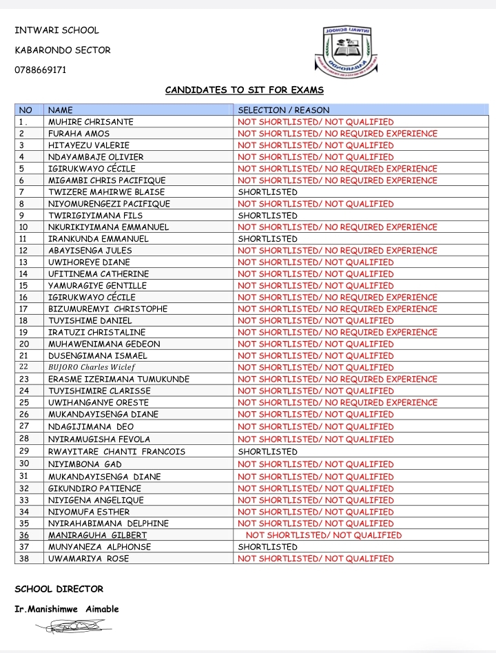 LIST OF CANDIDATES WHO WILL SIT FOR THE EXAMS (Only shortlisted will sit for Exams).